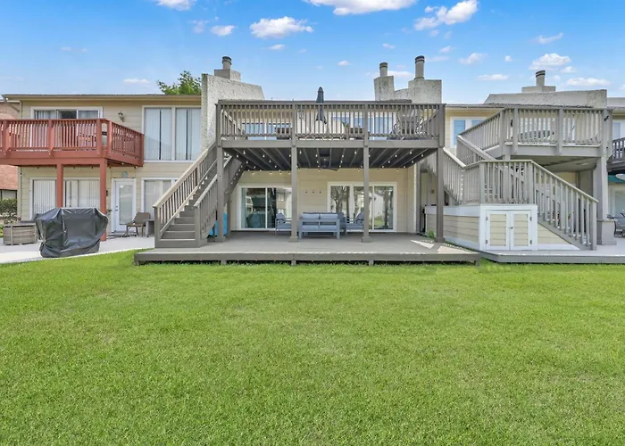 Situada a aproximadamente 15 minutos a pé de Lake Conroe Water Sports, Water Front - Swim - Pet Friendly - King Bed Vila convida os hóspedes a relaxar num pátio.